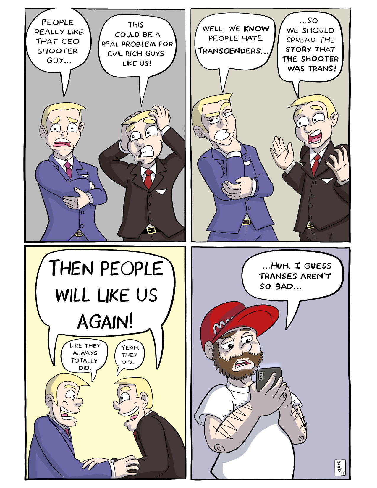 These same people are now telling people that they shouldn’t want health insurance CEOs to face repercussions for their evil business practices. They seem to have been caught completely off-guard by so many people having this much animosity towards a system that has been openly discussed across the culture and media for over 20 years as being broken and inhumane.