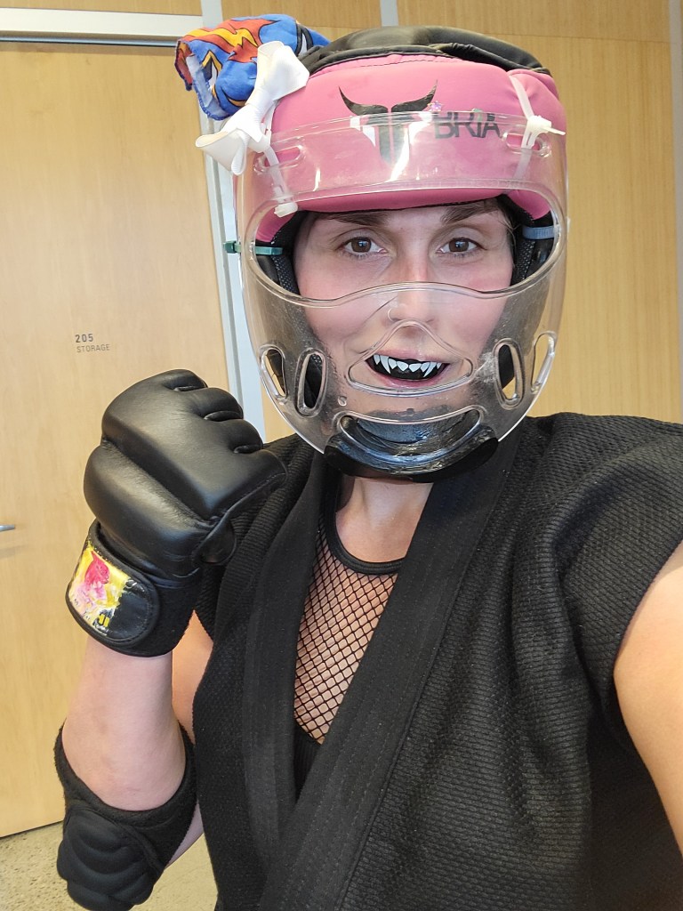 Buff Aunt Bria’s Queer & Trans Karate Club is still going strong after a season of training, with some truly excellent regular members showing up each week to improve their skills. Classes are still ongoing on Monday nights at 6:30 PM at 826 Pacific St in Vancouver. We are operating on a rotating schedule of class topics, with the first week focusing on strikes, the next week focusing on kicks, and the third focusing on the clinch and grappling (rinse and repeat). By the time this comes out, our next class will be Striking 😉 In addition to regular training, for the past few weeks we have been having some highly successful class field trips to The Cellar boxing gym – a radical, volunteer-run space with LGBTQ boxing classes and BIPOC nights, that I highly recommend anyone in Vancouver looking for a gym go and check out. I plan to bring whichever students from my Monday class who wish to come with coach Sony and myself to train over there each week, and I hope to build a long-lasting relationship between all three of our clubs.