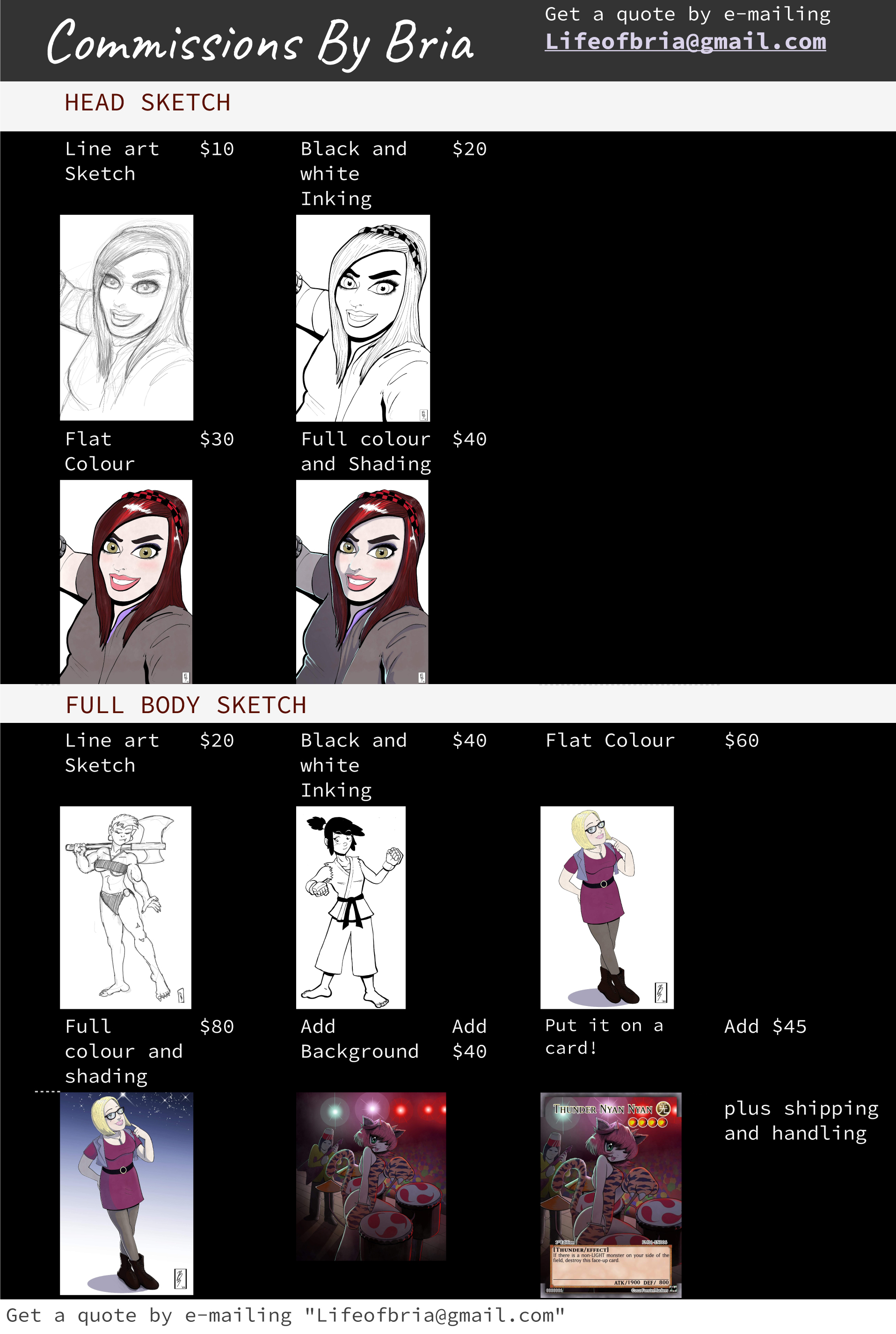 Commissions Are Open! Send me an e-mail with any questions or queries!lifeofbria@gmail.com Examples: Send me an e-mail with any questions or queries! lifeofbria@gmail.com Share this: Share on X (Opens in new window) X Share on Facebook (Opens in new window) Facebook Like Loading...