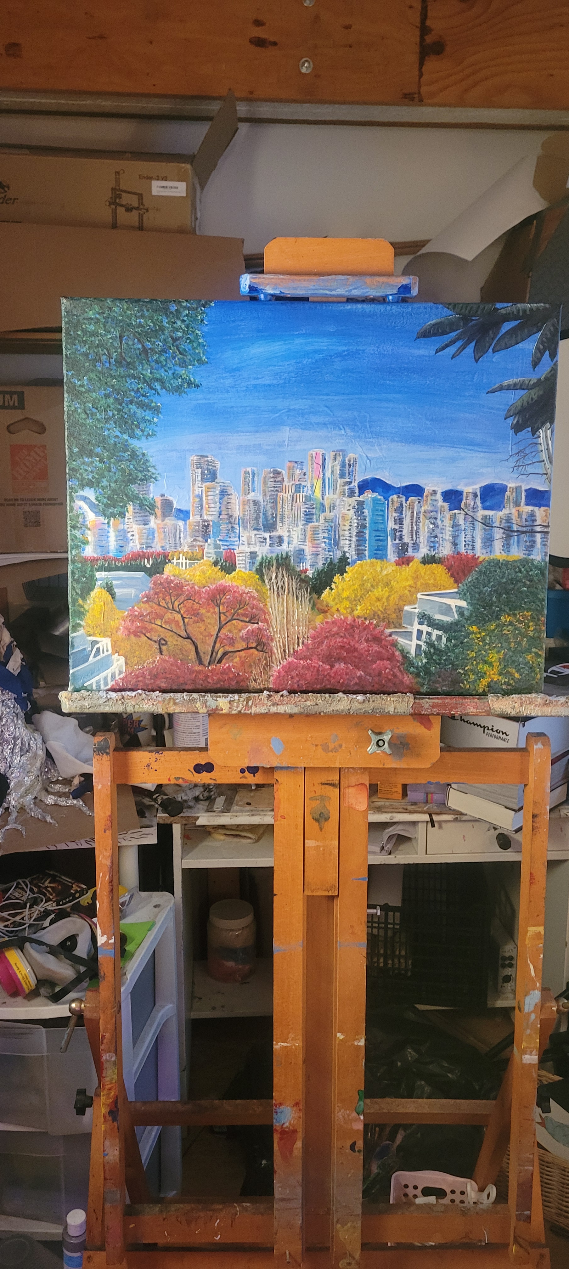 I started with simple watercolors made with dollarstore materials back in 2023, these grew in sophistication over 2024, and in 2025, thanks to donation of canvases and an easel by a friend who was moving out of town, I have graduated to painting at a much larger size on canvas with acrylics.